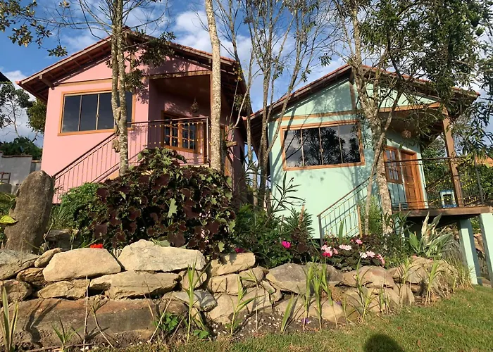 The 1-bedroom Pouso Lumiar Villa Lavras Novas is located about a 10-minute ride from the Three Drops Waterfall and offers guests to enjoy their evening on a patio with a kitchenette. Featuring mountain views, this Lavras Novas chalet invites guests to visit Valentine's Waterfall, located approximately 3 km away.
